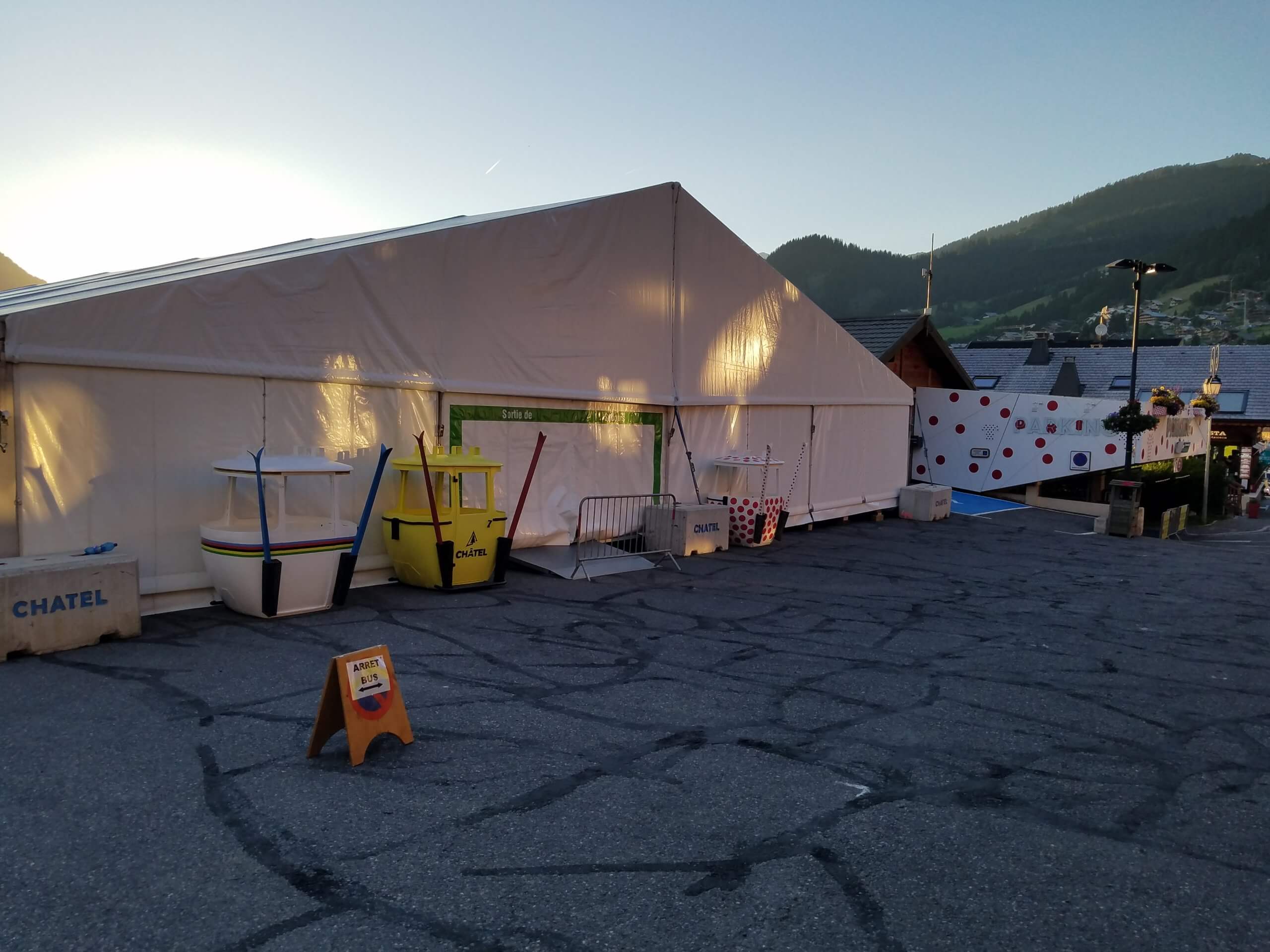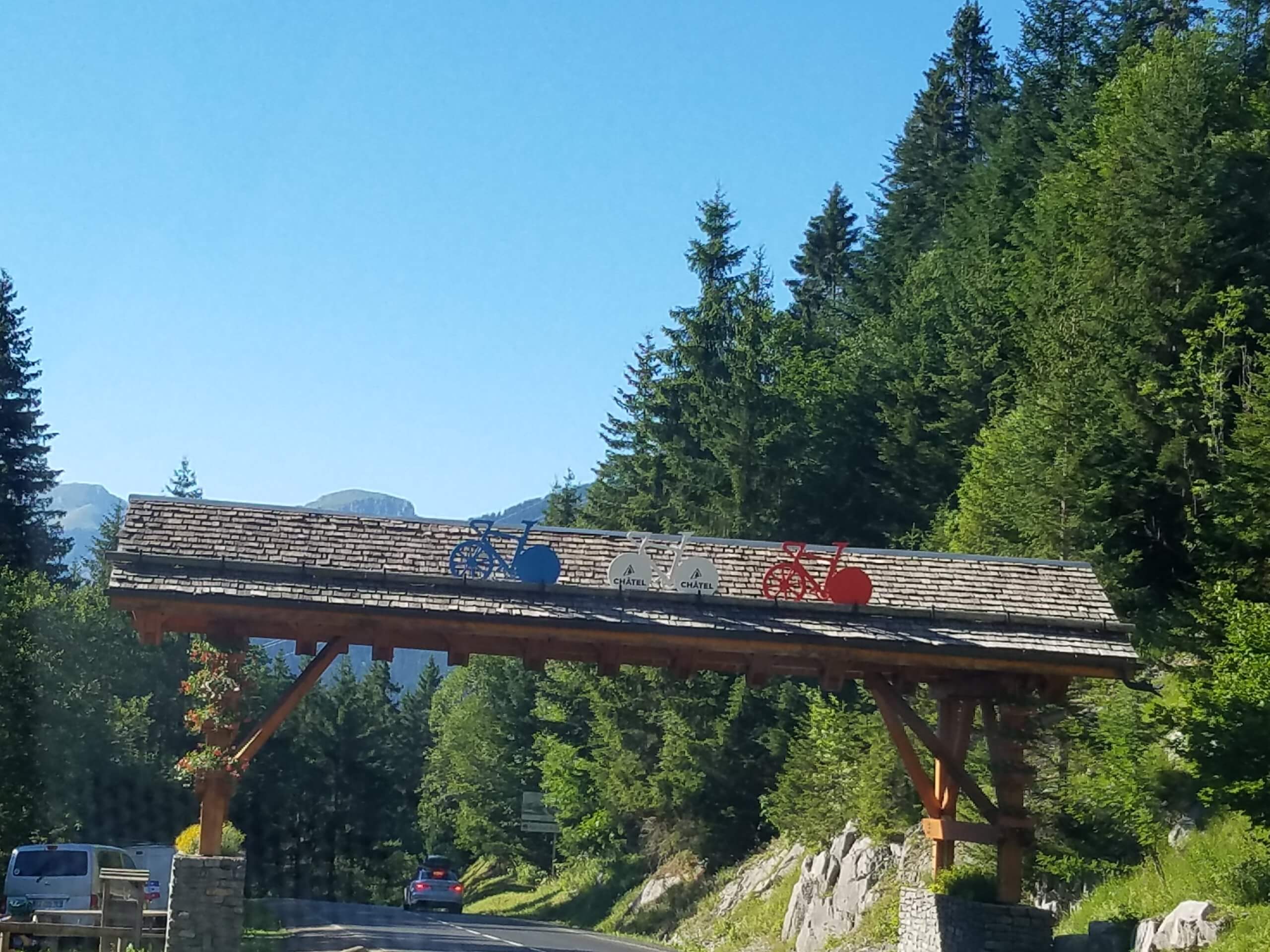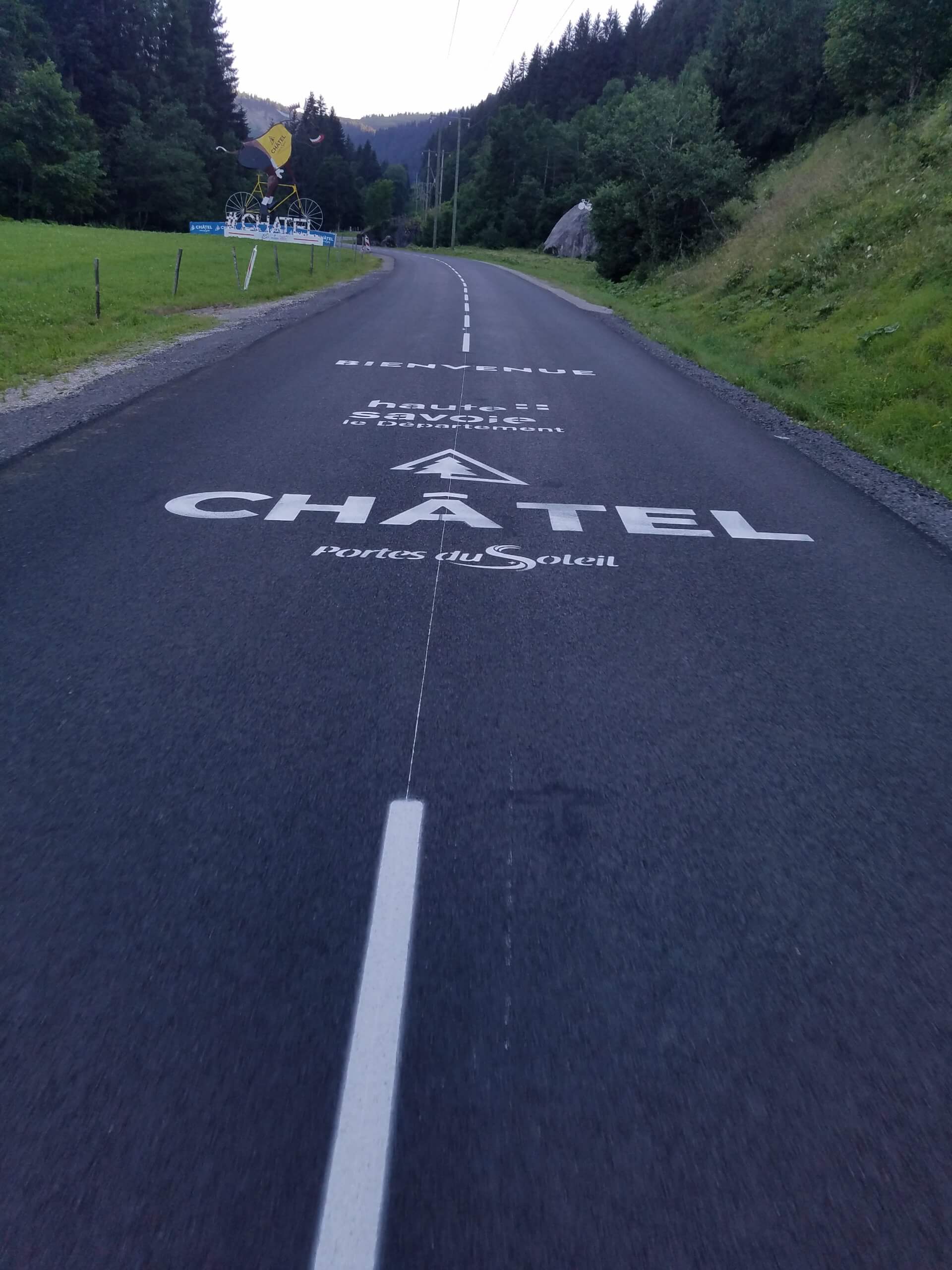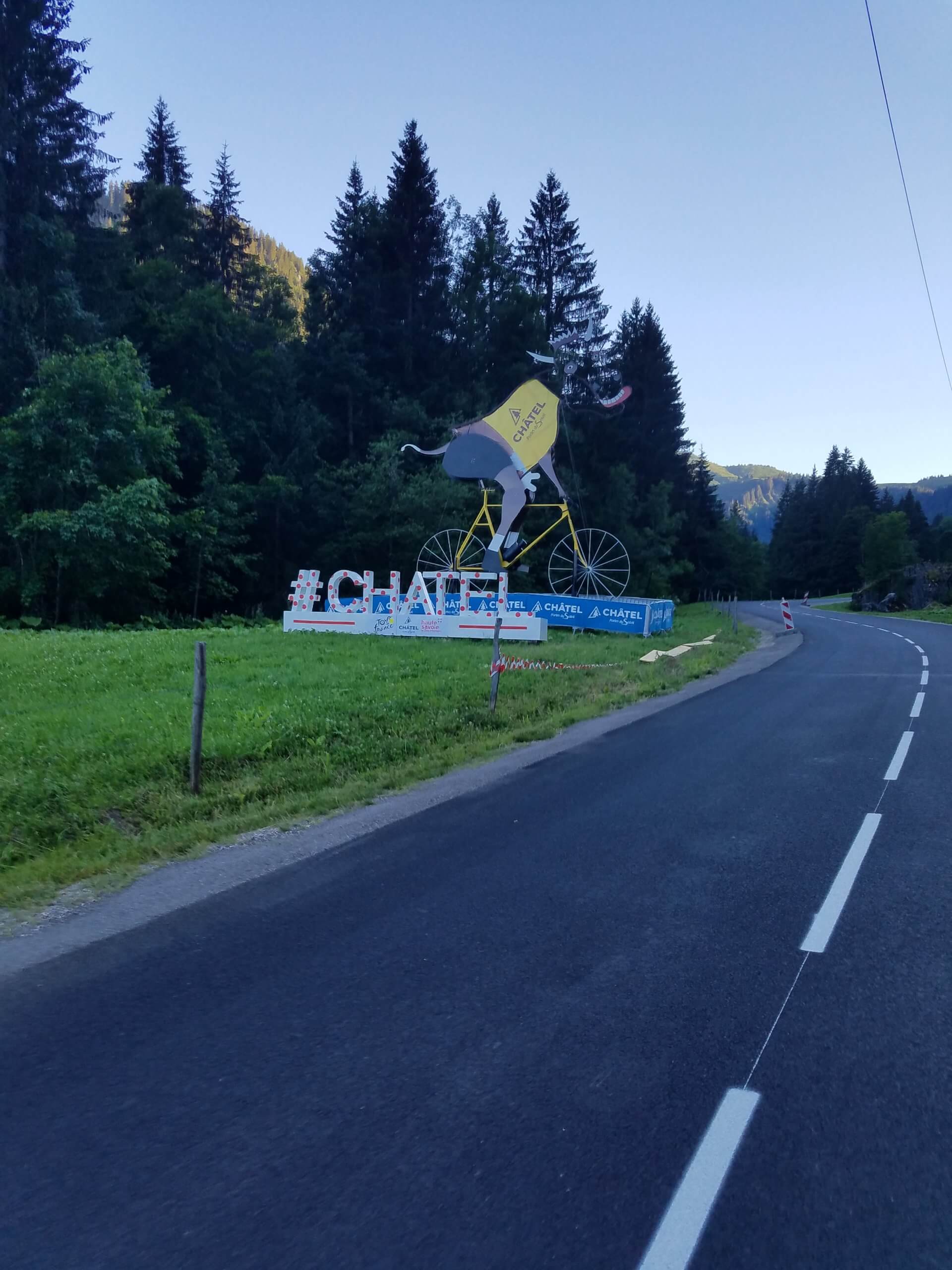 Châtel et ses habitants ont mis le paquet pour cet évènement: revètement de la route entièrement refaite du Pas de Morgins jusqu’à Pré La Joux (mais pas au-delà), affiches et décorations à presque toutes les habitations et bâtiments, mais aussi le long du parcours (voir la galerie) et un important service de navette et plan de circulation…